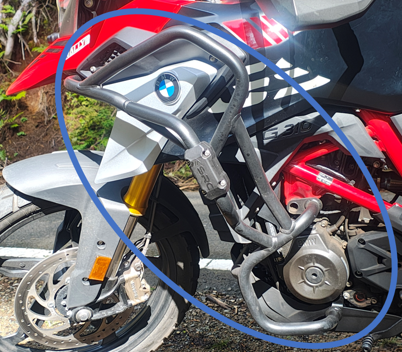 いざという時にエンジンや外装,私の足を守ってくれるパーツ. ヘプコ&ベッカーもこの手のパーツを出しているが, デザインが好みだったSRCを選択.(あと安いし…)