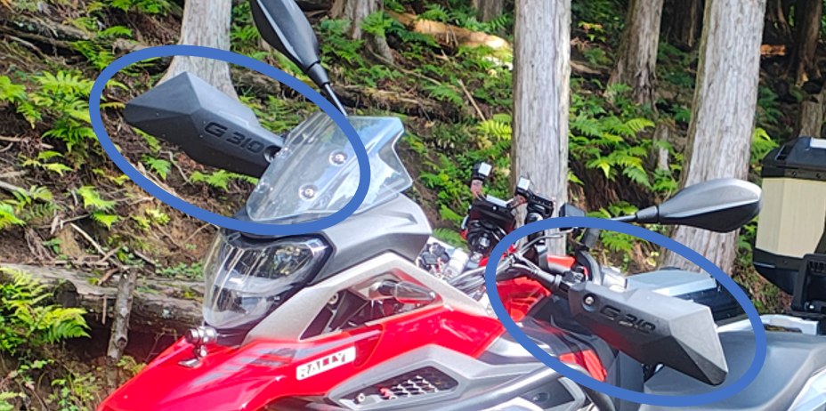BMW純正のハンドガード. 夏は虫から,冬は冷たい走行風から手を守ってくれる.